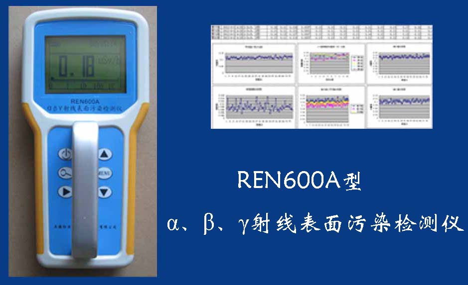 REN600A型α、β、γ射線表面污染檢測(cè)儀即可檢測(cè)α、β、γ射線,也能檢測(cè)到X射線,它采用高速嵌入式微處器作為數(shù)據(jù)處理單元,點(diǎn)陣式大屏幕LCD液晶顯示,讀數(shù)清晰、操作方便,具有400條超大容量數(shù)據(jù)存儲(chǔ)。儀器采用進(jìn)口的大面積MICA蓋革探測(cè)器,具有較高探測(cè)效率,可進(jìn)行α、β輻射表面污染檢測(cè)和X、γ輻射劑量率的監(jiān)測(cè)。此外通過配套的RenriCont表面污染管理軟件可將存儲(chǔ)的數(shù)據(jù)讀出后分析。可廣泛用在制藥廠、實(shí)驗(yàn)室、發(fā)電廠、進(jìn)出口商檢、采石場(chǎng)、環(huán)境實(shí)驗(yàn)室、環(huán)境污染調(diào)查、核安全應(yīng)急、緊急狀況營(yíng)救站、金屬處理廠、地下油田、供油管道裝備、醫(yī)院核醫(yī)學(xué)科、同位素實(shí)驗(yàn)室、環(huán)境保護(hù)和警察局等部門。REN600A型α、β、γ射線表面